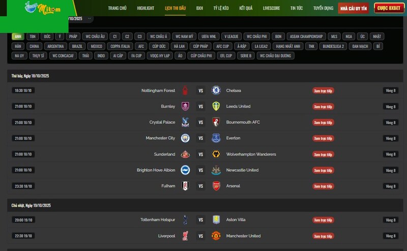 Nếu anh em là fan Premier League như mình, thì chắc chắn sẽ thích mục lịch thi đấu bóng đá anh của Mi Tom TV.