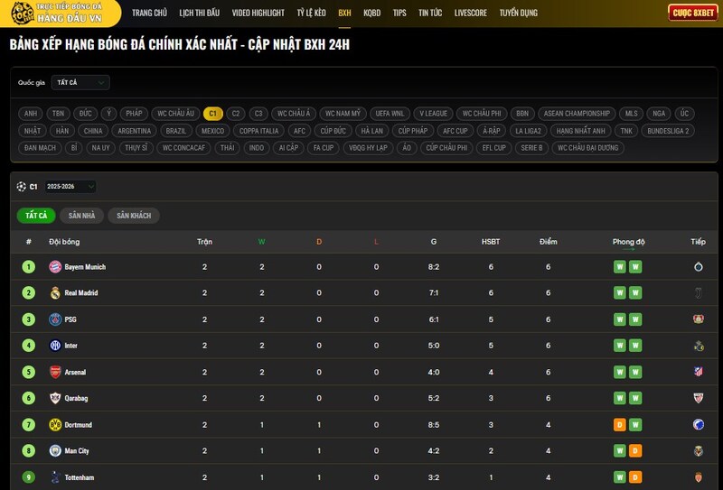Bảng xếp hạng bóng đá, tỷ lệ kèo, kết quả – Mọi thông tin đều có đủ
